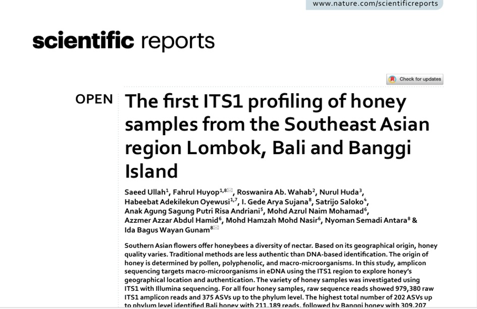 Deskripsi : Southern Asian flowers offer honeybees a diversity of nectar. Based on its geographical origin, honey quality varies. Traditional methods are less authentic than DNA-based identification. The origin of honey is determined by pollen, polyphenolic, and macro-microorganisms. In this study, amplicon sequencing targets macro-microorganisms in eDNA using the ITS1 region to explore honey’s geographical location and authentication.
