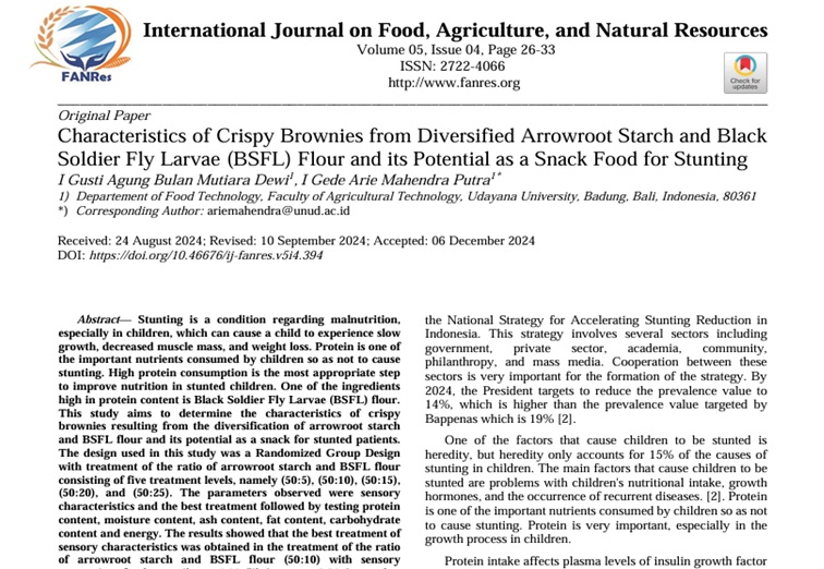 Characteristics of Crispy Brownies from Diversified Arrowroot Starch and Black Soldier Fly Larvae (BSFL) Flour and its Potential as a Snack Food for Stunting